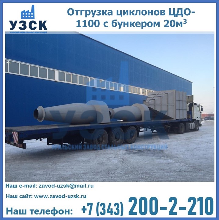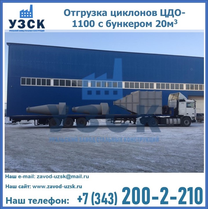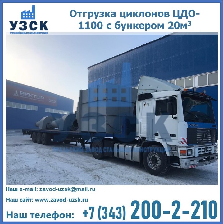Циклоны ЦДО-1100 с бункером на 20 кубов были отгружены в декабре 2018 года в г. Новосибирск Миасс.