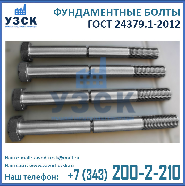 Приобретая болты ГОСТ 24379.1-2012 напрямую у завода-изготовителя вы не переплачиваете многочисленным посредникам. Кроме того, при обширных объемах закупки завод УЗСК предлагает скидки на анкерные болты М 12, М 16, М 20, М 24, М 30, М 36, М 42, М 48, М 52, М 56, М 64, М 72, М 80 и М 90.