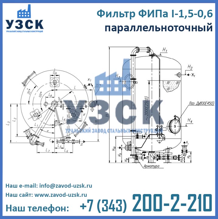 Уральский Завод Стальных Конструкций – ведущий производитель фильтрационного оборудования, осуществляющий изготовление параллельноточных фильтров ФИПаI 1,5-0,6 в соответствии требованиями ГОСТ. Получить консультацию по подбору оборудования, уточнить актуальные цены фильтров ФИПа I 1,5-0,6 в Миассе и сроки их изготовления, запросить технические характеристики и сертификационные документы Вы можете, связавшись с менеджерами отдела продаж завода УЗСК по координатам, указанным в разделе «Контакты». Если Вы уже определились с выбором и хотите купить фильтр ФИПа I ступени очистки прямо сейчас, заполните форму онлайн заказа размещенную ниже.