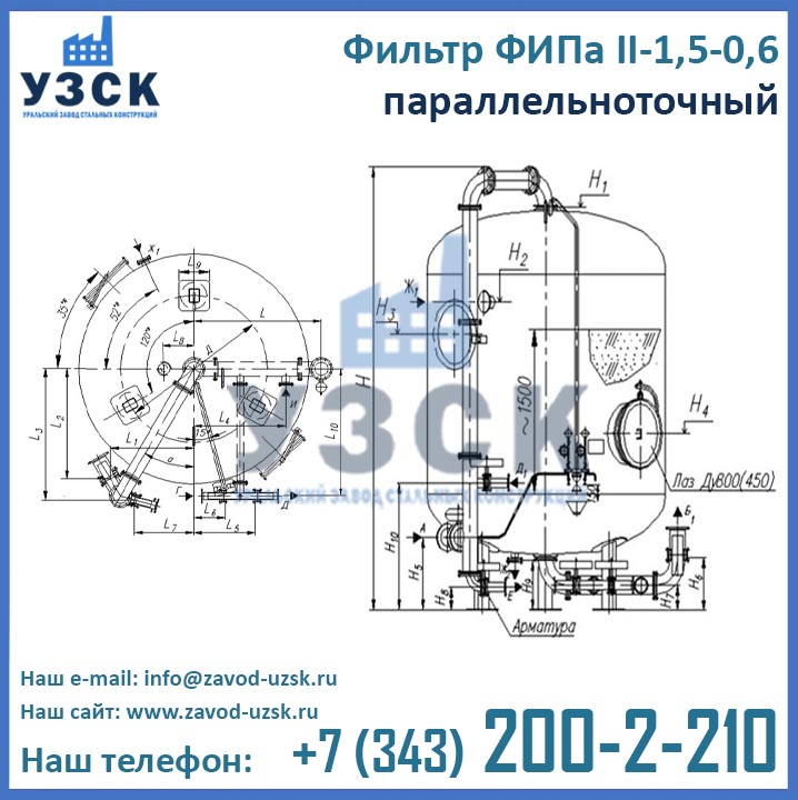 Цены фильтра ФИПа 2 ступени 1,5-0,6 формируются в соответствии со множеством факторов, таких как материальное исполнение, тип распределительных устройств, требуемая комплектация, необходимости доставки и т.д. Для расчета цены фильтров ФИПаII-1,5-0,6 в Миассе обратитесь в отдел продаж Уральского Завода Стальных Конструкций по координатам, указанным в разделе «Контакты».