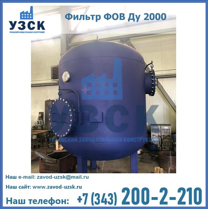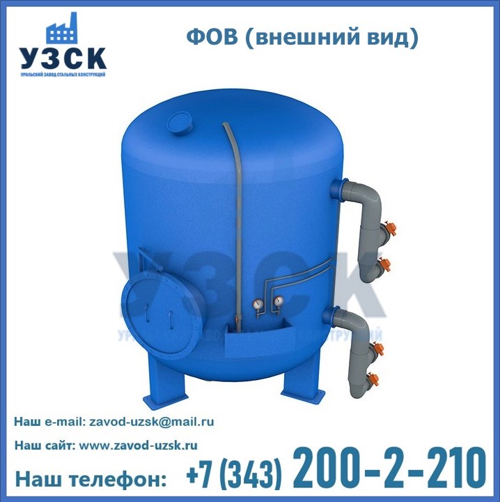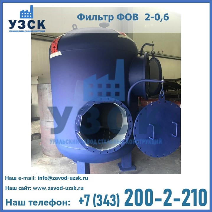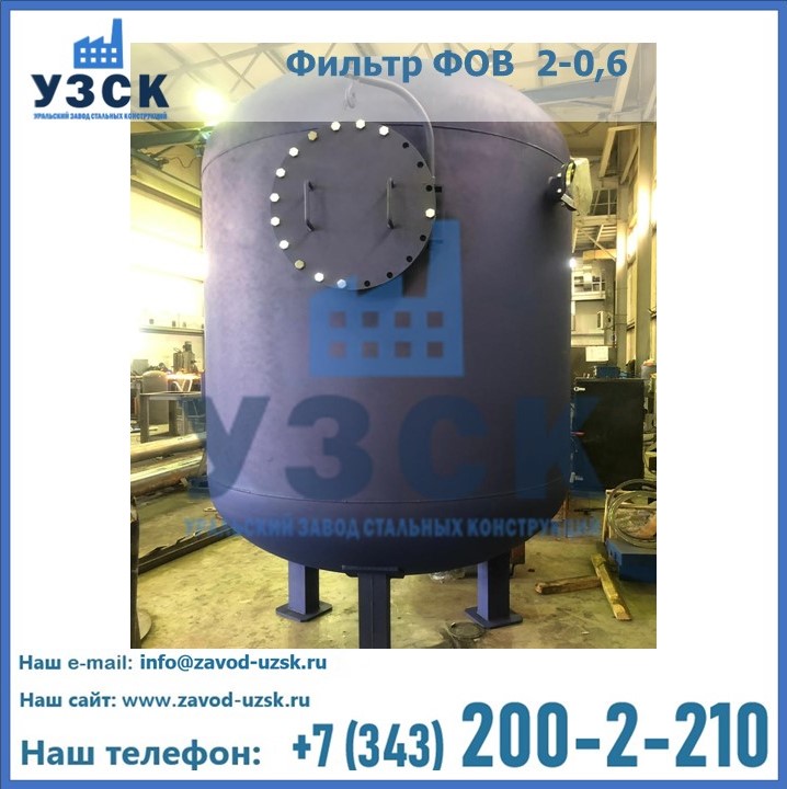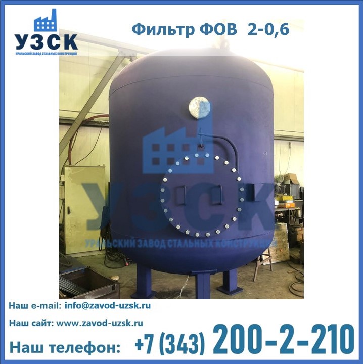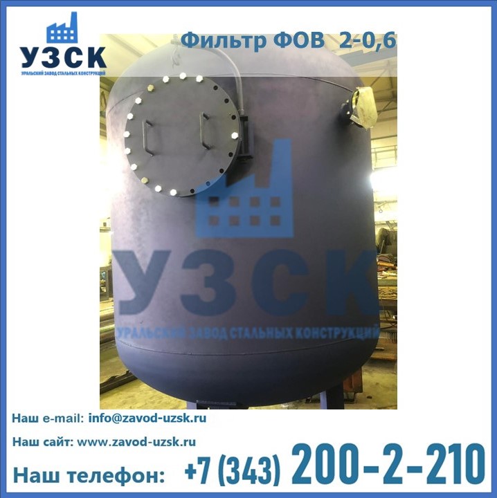 Удаление взвешенных веществ различного уровня дисперсности из рабочих жидкостей эффективно проводит фильтр осветлительный типа ФОВ (скорый или механический) — вертикально-цилиндрической формы установка, разработанная для систем водоподготовки различного класса. Оборудование представляет собой однокамерный агрегат для очистки воды рекомендованный для применения на станциях очистки стоков, в коммунальных котельных, на ТЭЦ, в промышленных отопительных системах и пр. Заказать производство ФОВ фильтров предлагает наш Уральский завод стальных конструкций в Миассе. У нас можно купить фильтрационное оборудование различного класса и типа, в том числе фильтры ФОВ из нержавеющей стали.