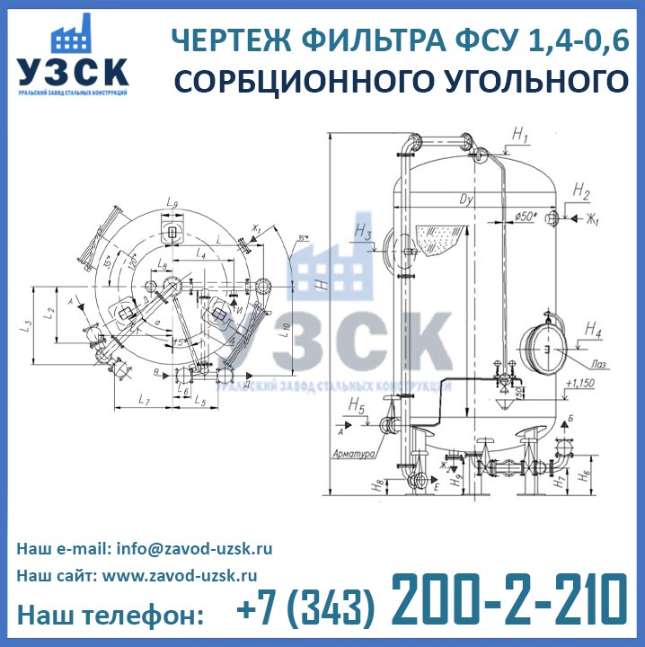 Если вы ищете фильтры ФСУ-1,4-0,6 в Миассе от изготовителя, то Вы на правильном пути! Уральский завод стальных конструкций – непосредственный производитель сорбционных фильтров ФСУ, предлагающий самые выгодные цены на ФСУ-1.4-0.6 в Миассе. По окончании процесса производства угольные фильтры проходят гидравлические испытания пробным давлением 0,9 МПа на аттестованном гидростенде, находящимся в собственности завода УЗСК. Мы гарантируем высокое качество выпускаемой продукции, и в этом уже убедились ведущие предприятия промышленного сектора России и стран ЕАЭС (см. раздел «Наши клиенты»).