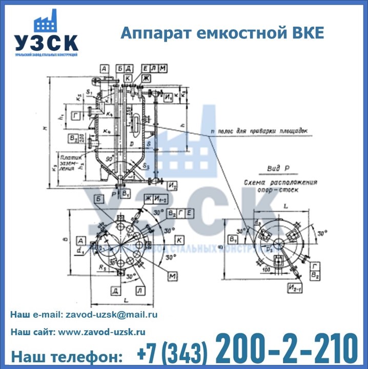 Емкостные аппараты ВКЭ представляют емкость с эллиптической крышей и коническим днищем. аппарат может использоваться в Миассе для приема и хранения жидкостей и взрыво- и пожароопасных веществ. Создаваемое давление не должно превышать 0,6; 1,0 МПа. Емкости ВКЭ выполняются как цельносварные. Используется марка стали, отвечающая степени агрессивности продукта и температуре эксплуатации.